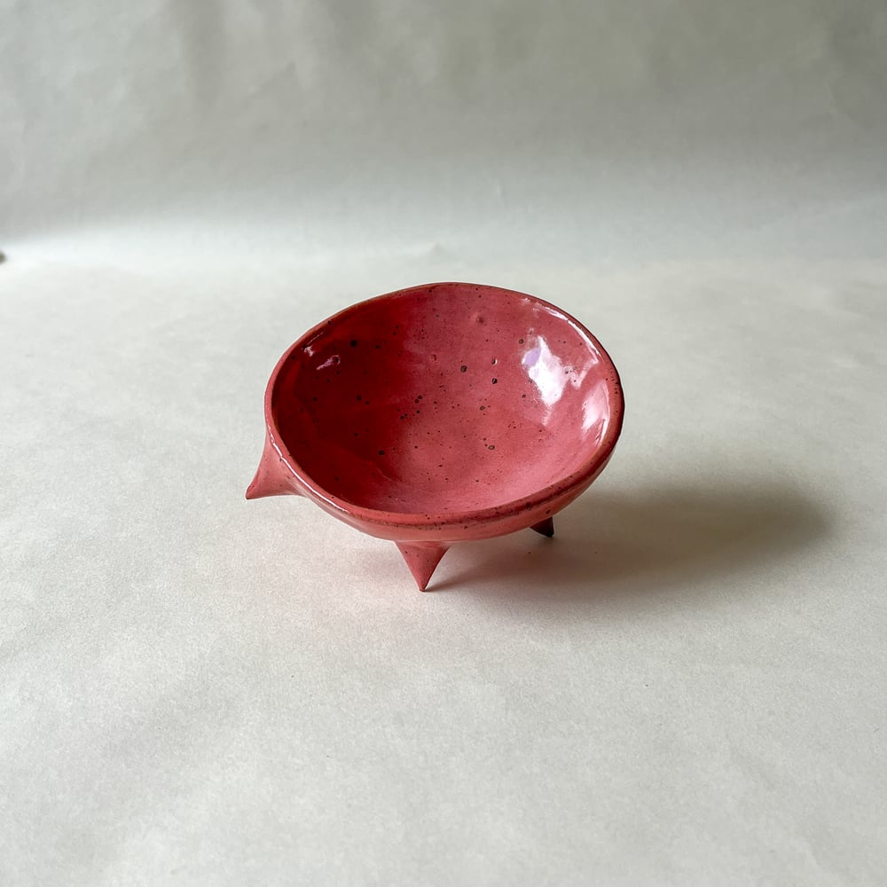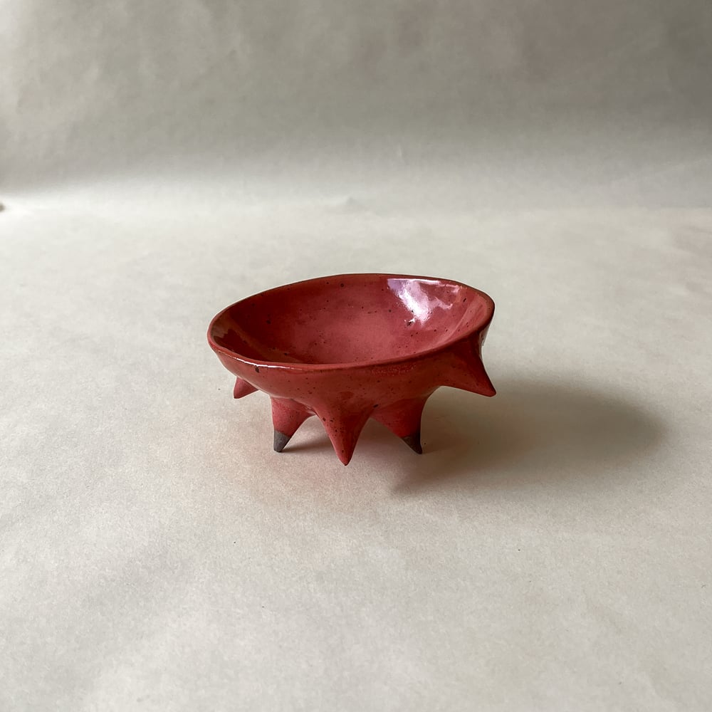 Spikey trinket dish in raspeberry pink glaze