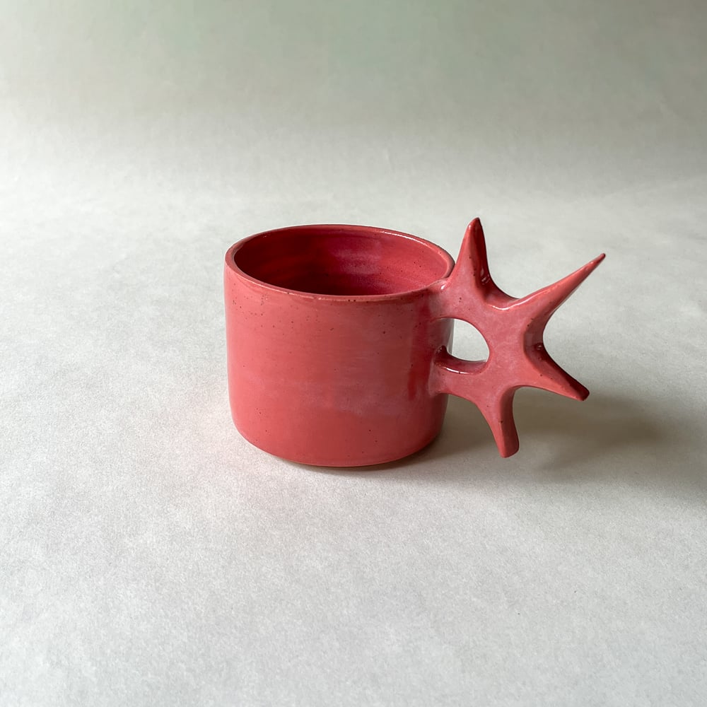 Spikey handle mug with raspberry pink glaze